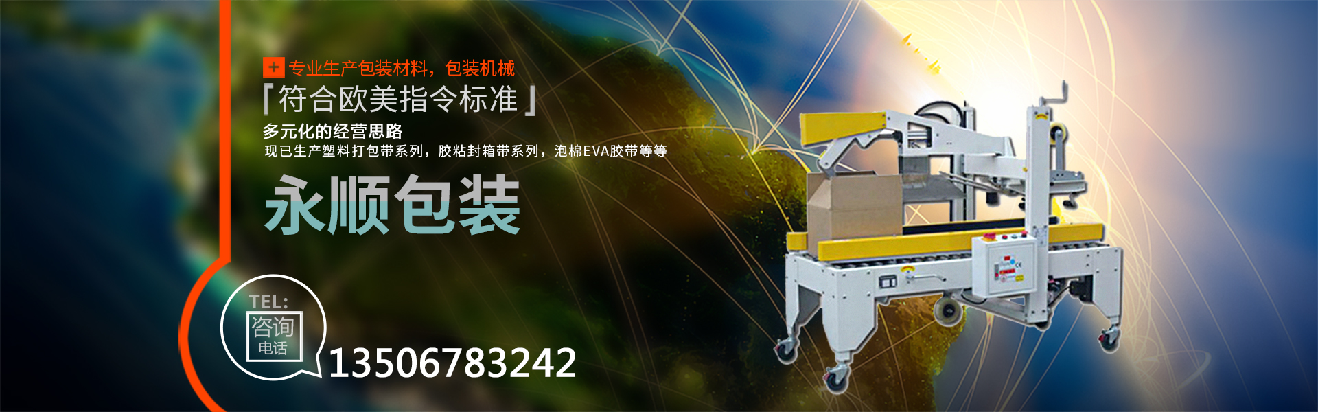 慈溪市永順包裝材料有限公司是一家專業(yè)生產(chǎn)包裝材料,包裝機(jī)械的廠家。公司自創(chuàng)建以來,經(jīng)過不斷的努力,憑借優(yōu)異的產(chǎn)品質(zhì)量,良好的售后服務(wù),在市場上取得了突飛猛進(jìn)的業(yè)績,獲得了客戶的廣泛認(rèn)可與贊譽(yù)。公司本著多元化的經(jīng)營思路,現(xiàn)已生產(chǎn)塑料打包帶系列,膠粘封箱帶系列,泡棉EVA膠帶,鋁箔膠帶、美紋膠帶、牛皮膠帶、文具膠帶。全自動打包機(jī),收縮包裝機(jī),移印機(jī),真空包裝機(jī),自動封口機(jī),纏繞膜裹包機(jī),等各種包裝機(jī)械(無人化全自動包裝機(jī)械)。其中塑料打包帶、粘膠帶已全面通過SGS認(rèn)證,符合歐美指令標(biāo)準(zhǔn)。